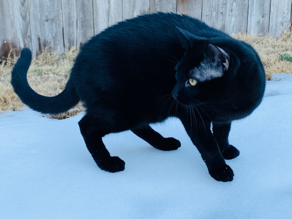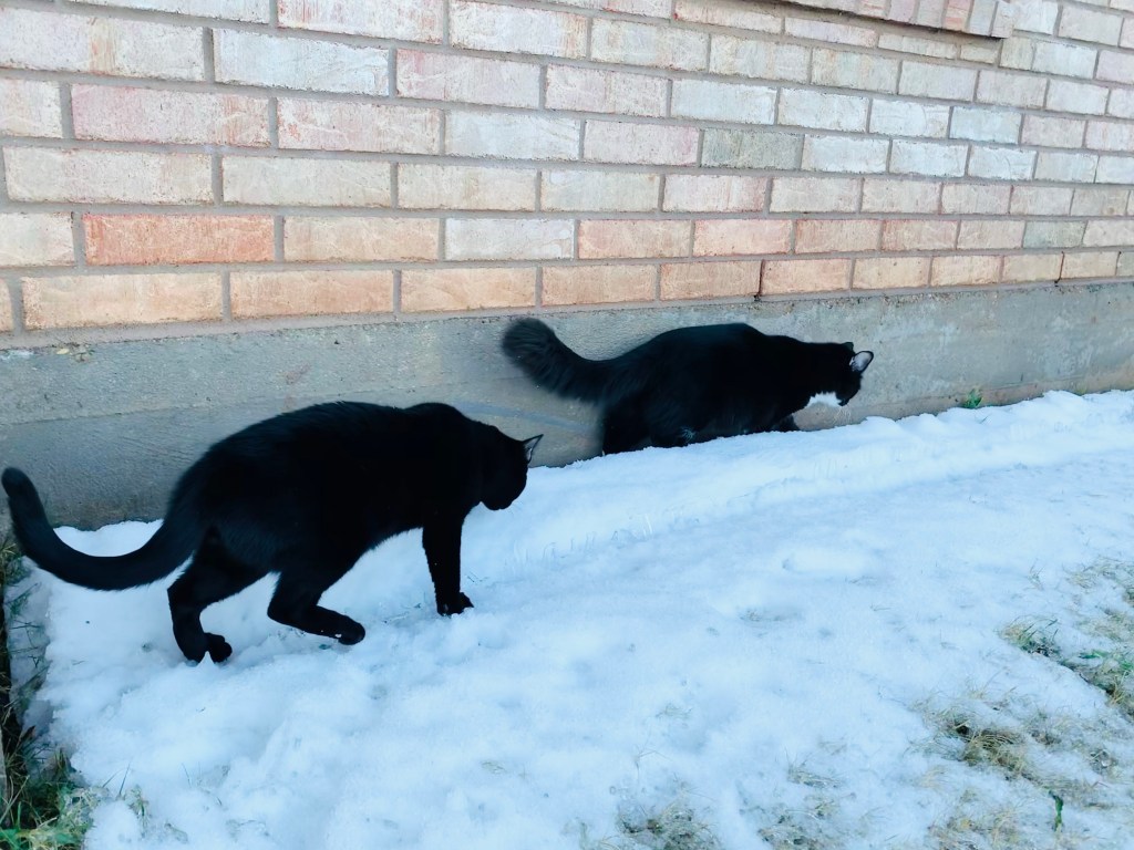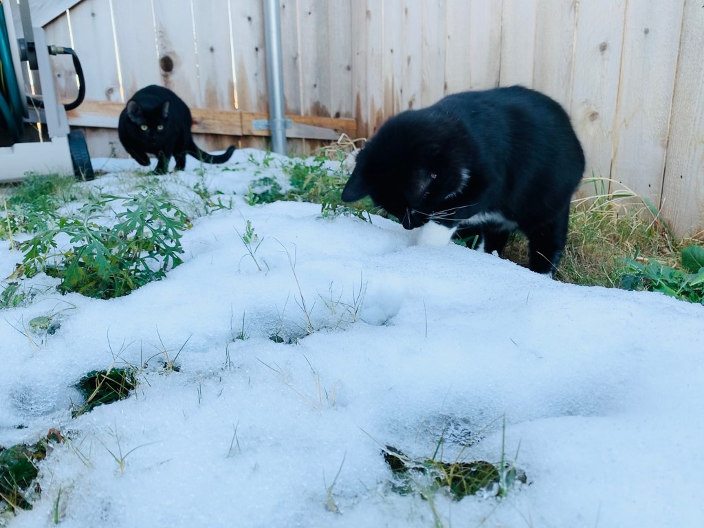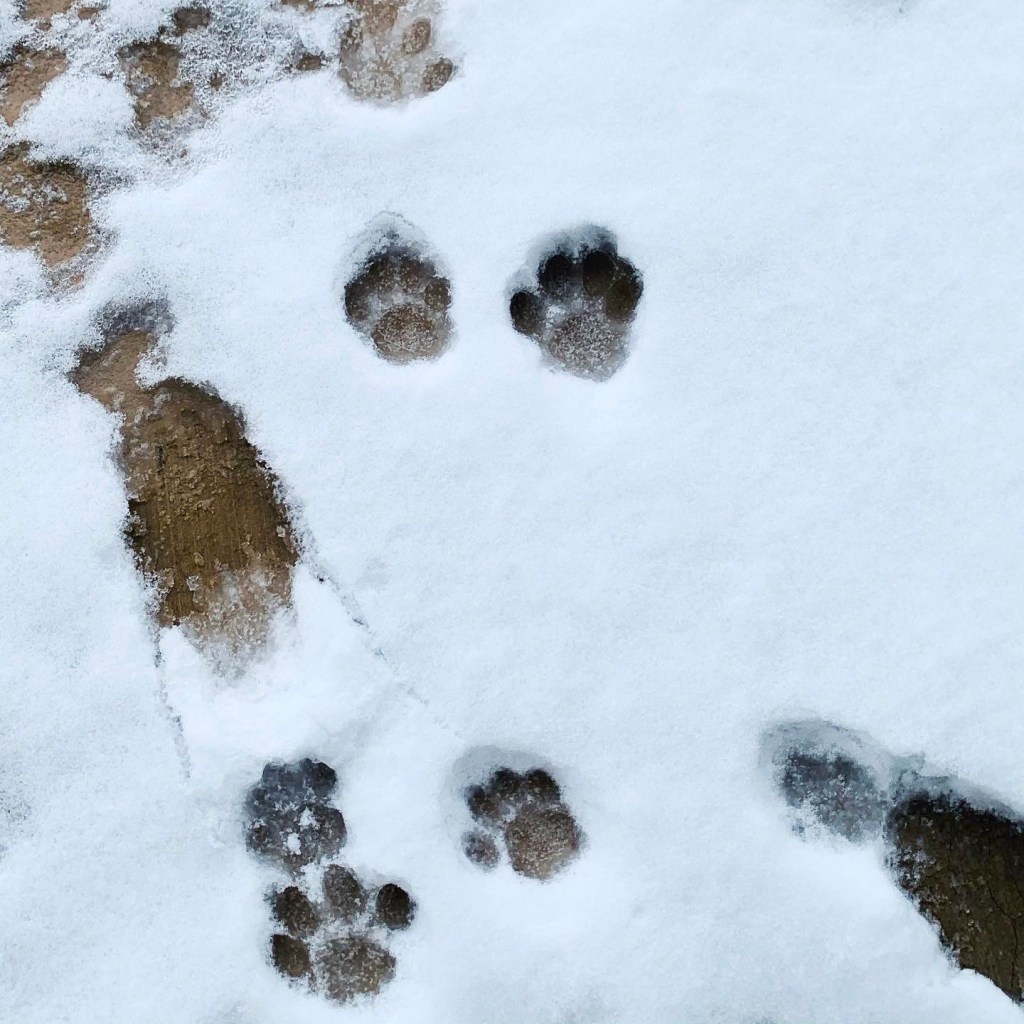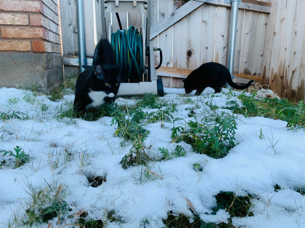 A fun morning playing in the snowOreo testing the snowLet’s go gangMy toe beans are so cold but feel so goodSocks, what you find under the snow?Smells like snowThe air is so freshSo cold my ears have gone north
