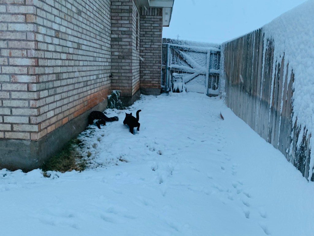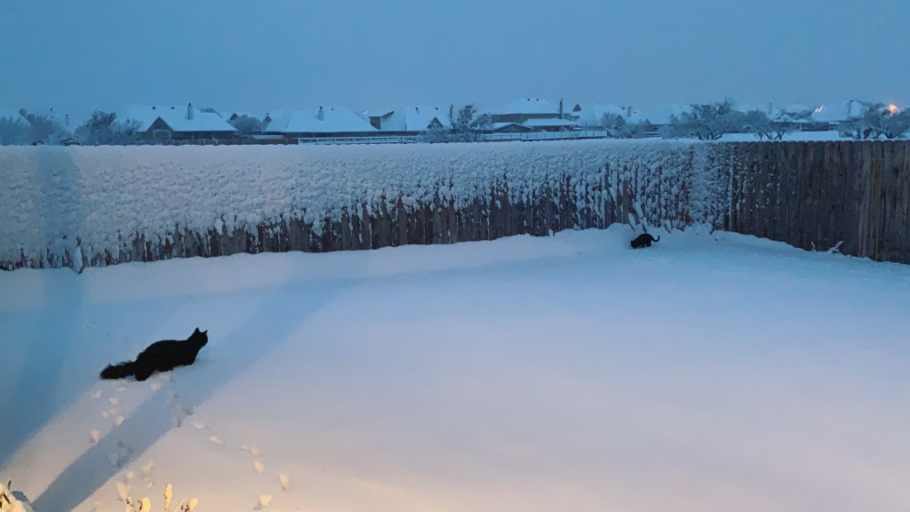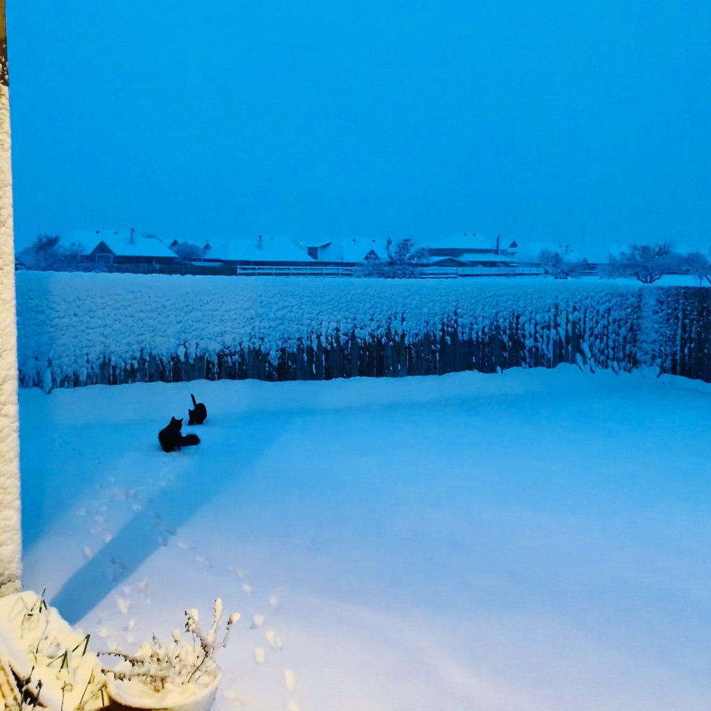 We woke up to the sky filled with flurries and the ground full of white snow. Couldn’t help it but we begged our Hoomans to let us go outside to play. We love playing in the snow any chance we get because we don’t see snow too much. We were exhausted and took a long nap afterwards.